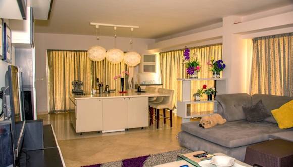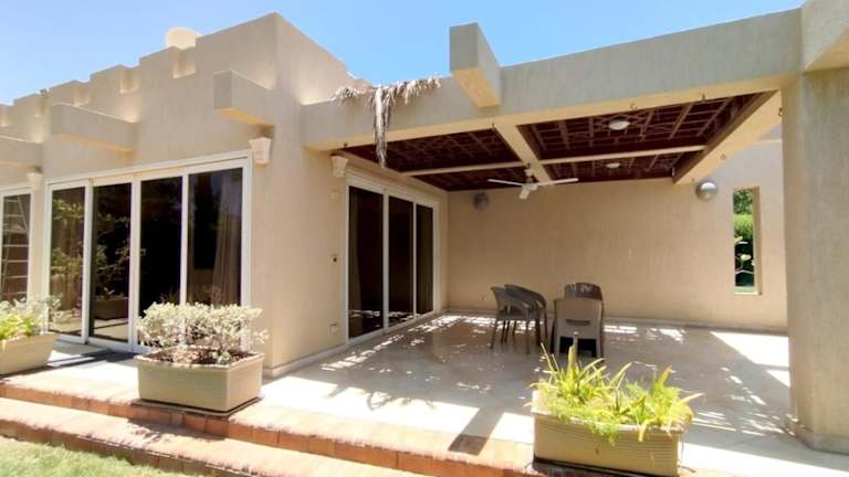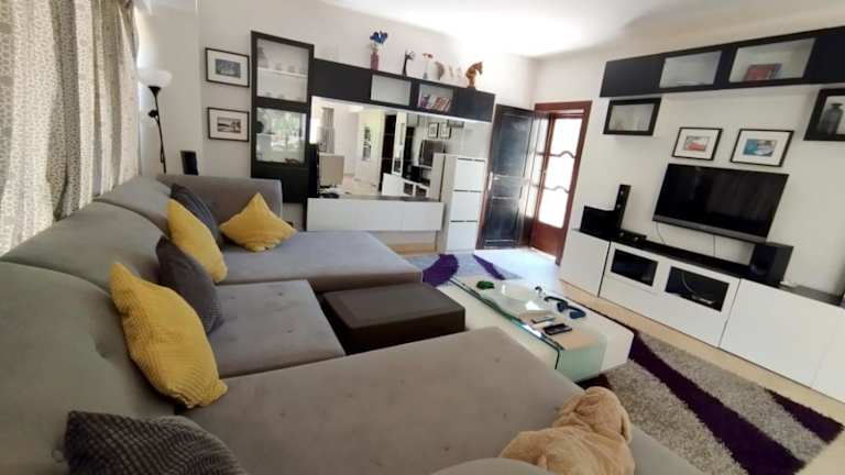 Die Villa umfasst 3 Schlafzimmer, ein Wohnzimmer und eine gut ausgestattete Küche mit einem Kühlschrank. Zudem ist ein Flachbild-TV vorhanden.