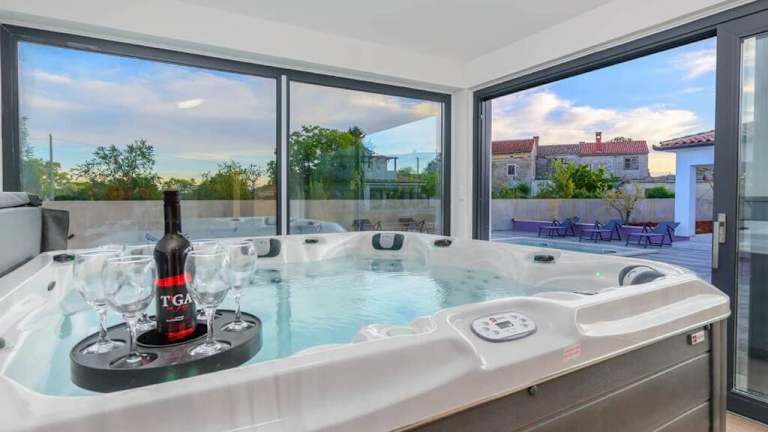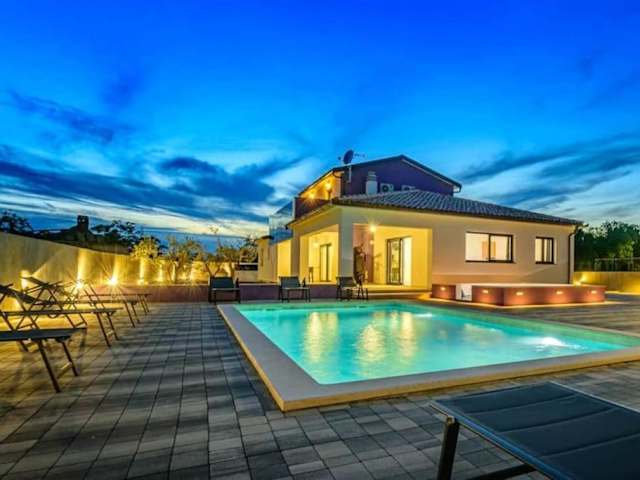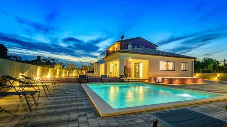 Die Villa 9 befindet sich in Marčana, etwa 15 km vom nächstgelegenen Flughafen Pula entfernt. Die umliegende Region bietet Berg- und Poolblick. Sehenswürdigkeiten wie das Amphitheater Pula sind 19 km entfernt, während die Kirche der heiligen Euphemia in Rovinj 33 km entfernt ist.