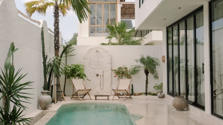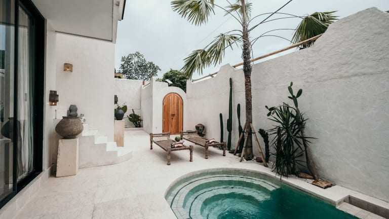 Die Villa A Canggu bietet einen Blick auf den Pool sowie einen Außenpool und einen weitläufigen Garten. Die Unterkunft umfasst eine gemeinschaftliche Lounge und ist ideal für einen entspannten Aufenthalt. Die Villa ist mit modernen Annehmlichkeiten ausgestattet und bietet eine angenehme Atmosphäre für Gäste.