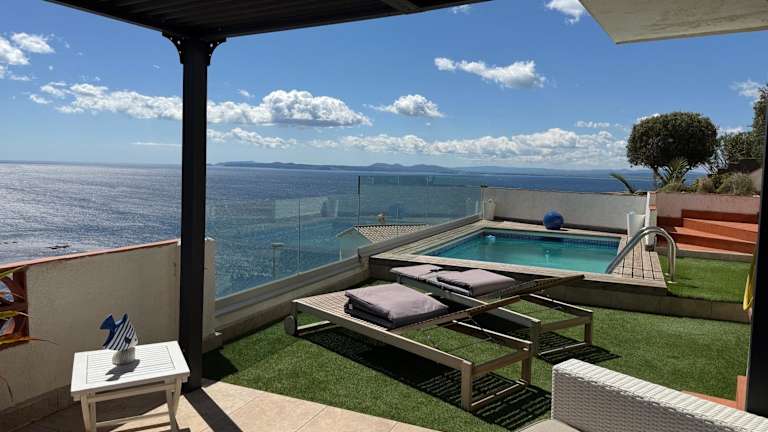 Die Villa verfügt über 3 Schlafzimmer und 2 Badezimmer. Zur Ausstattung gehören Bettwäsche, Handtücher, ein Flachbild-TV mit Satellitenkanälen, ein Essbereich sowie eine voll ausgestattete Küche. Die Terrasse bietet einen Meerblick. Für zusätzlichen Komfort können Handtücher und Bettwäsche gegen Aufpreis bereitgestellt werden.