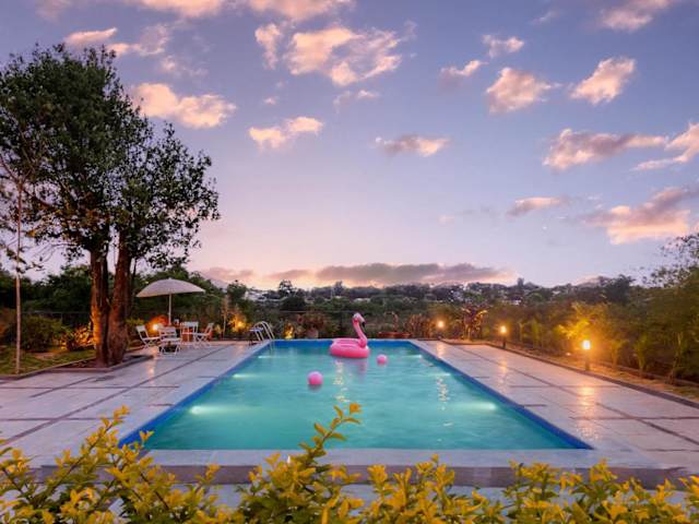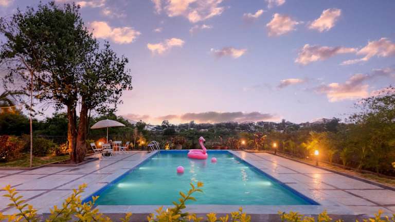 Das StayVista at Villa Aangan befindet sich in Lonavla, einer charmanten Stadt in der Region Maharashtra. Es liegt in der Nähe des Bahnhofs, was es für Reisende sehr bequem macht. Die Umgebung bietet eine malerische Landschaft mit vielen natürlichen Schönheiten wie dem Bhushi-Staudamm und den Kune-Wasserfällen, die nur wenige Kilometer von der Villa entfernt liegen. Der internationale Flughafen Pune ist ebenfalls gut erreichbar und bietet eine einfache Anreise für internationale Gäste.