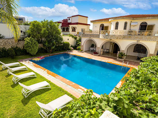 Die Villa Achakar 32 ist eine großartige Unterkunft im Stadtteil Achakkar in Tanger. Mit einem eigenen Außenpool, einem Garten, einer Terrasse und nur 300 m vom Strand Achakkar entfernt, bietet sie den perfekten Ort, um Ihren Urlaub zu genießen. Die Villa verfügt über 7 Schlafzimmer, eine gut ausgestattete Küche, einen gemütlichen Sitzbereich und 3 Badezimmer. Handtücher und Bettwäsche werden gestellt und kostenfreie Privatparkplätze stehen zur Verfügung. Die Umgebung bietet zudem zahlreiche Möglichkeiten zum Wandern.