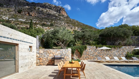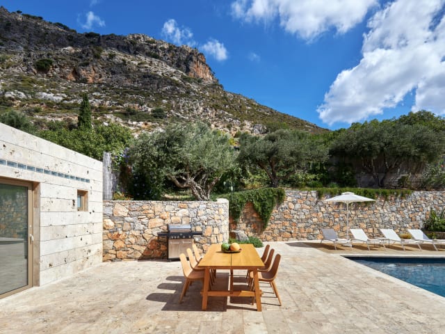 Villa Adagio Villa Adagio is situated in the East Side of Crete, in the traditional village of Vrachasi. The village belongs to the municipality of Agios Nikolaos and it is built on the foothills of Mount Kalaritis. The villa is situated on the higher grounds of the area, giving a unique location which combines the view and the quietness. The villa is distinguished for the comfort, the elegance and the attention to details. Villa Adagio is decorated with care, with high-tech equipment, ergonomically designed furniture and contemporary houseware. The location is convenient as the distance of the Villa to the international airport of Heraklion “Nikos Kazantzakis” is 35 minutes and to the port of Heraklion is 40 minutes. The nearest beach is located in Milators or Sissi, which is 10 to 15-minute drive. There one may also find taverns with marvellous Cretan cooking and fish food. The distance of the mini market is 1 minute as it is situated in the village of Vrachasi. The location of the villa offer easy access to the highway where you may reach the main city of Heraklion, or the picturesque city of Agios Nikolaos. Elounda is just 20km away Please note that heating the pool costs 50 euro extra (charged per each reservation).