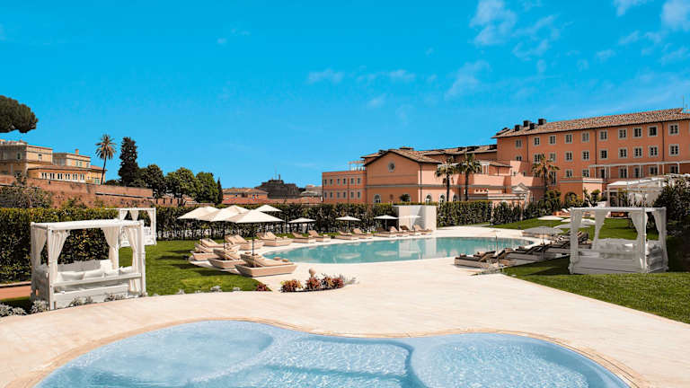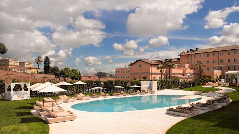 LUXUSHOTEL IM HERZEN DER EWIGEN STADT Eingehüllt in die Legenden von Italiens antiker Hauptstadt, erhebt sich vor dem Hintergrund des spektakulären Landschafts bildes der Villa Agrippina die kostbare Perle der Sammlung von Villa Agrippina Gran Melià Gelegen an den Ufern des Tibers, nur einen fünfminütigen Fußweg vom Vatikan, Trastevere und dem Petersdom entfernt, setzt dieses atemberaubende Stadtresort neue Maßstäbe für die luxuriösesten Hotels in Italiens pulsierender Hauptstadt. Das Hotel bietet eine beeindruckende Pools, üppige Gärten und eine komplette SPA Clarins&My Blend. Der exquisite Geschmack und elegante Design der Zimmer machen dieses Hotel ein Führer unter den Luxus-Unterkünfte in Rom. Sobald Sie im Hotel Villa Agrippina Gran Meliá Rome eintreffen, beginnt für Sie eine einzigartige Reise, die den Zauber von Roms ferner Vergangenheit mit dem elegantesten Luxus unserer Zeit verflechtet.