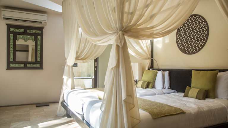 Die Villen bieten ein angenehmes Raumklima mit Klimaanlage und Ventilator. Die meisten Zimmer sind mit einem Balkon ausgestattet und verfügen über ein Schlafzimmer mit einem eigenen Bad, das mit einer Whirlpool-Badewanne und einer Regendusche ausgestattet ist. Zusätzlich sind ein Wohn- und Essbereich im Freien sowie eine Kochnische mit Kühlschrank, Herd, Mikrowelle und Tee-/Kaffeezubereiter vorhanden. Ein Safe, eine Minibar, ein Schreibtisch sowie eine Vielzahl von Unterhaltungsmöglichkeiten wie Sat-TV und DVD-Player sind ebenfalls Teil der Ausstattung. Es sind sowohl Nichtraucherzimmer als auch Zimmer für Gäste mit eingeschränkter Mobilität buchbar.