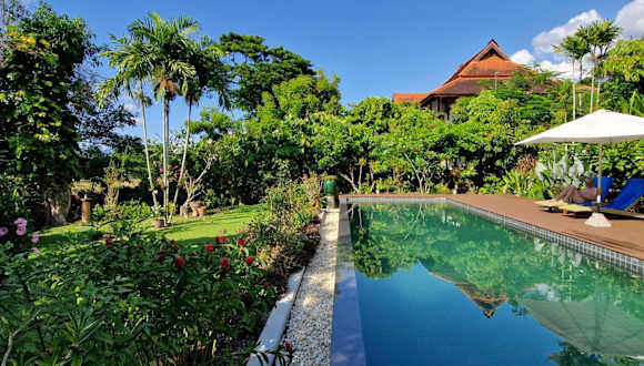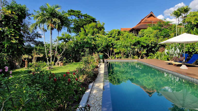 Erleben Sie einen unvergesslichen Aufenthalt im Hotel Villa Albizia in Chiang Mai. Genießen Sie den Kolonial- und Lanna-Stil der Unterkunft, die sich nur 20 Fahrminuten von der Innenstadt entfernt befindet. Freuen Sie sich auf einen wunderschönen Garten, einen Infinity-Pool und eine atemberaubende Aussicht auf Reisfelder und Berge. Die Zimmer sind komfortabel ausgestattet und WLAN steht Ihnen kostenlos zur Verfügung. Nutzen Sie die kostenlosen Fahrräder und lassen Sie sich von der Unterkunft bei der Organisation von Ausflügen unterstützen. Der internationale Flughafen ist nur 22 km entfernt und ein Abholservice ist verfügbar.