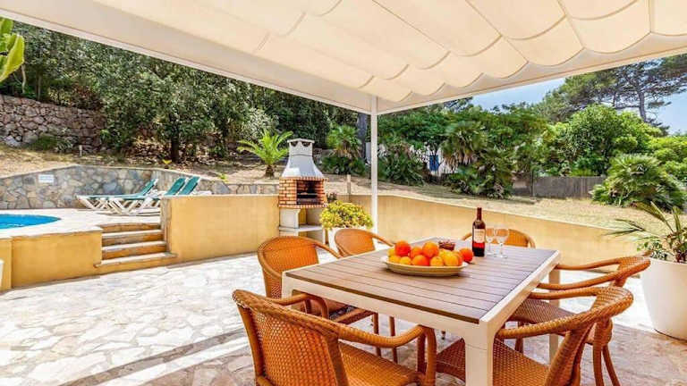 Die Villa verfügt über drei Schlafzimmer und zwei Badezimmer. Zur Ausstattung gehören Bettwäsche, Handtücher, ein Flachbild-TV sowie eine voll ausgestattete Küche. Die Unterkunft bietet zudem Klimaanlage und eine Sonnenterrasse.