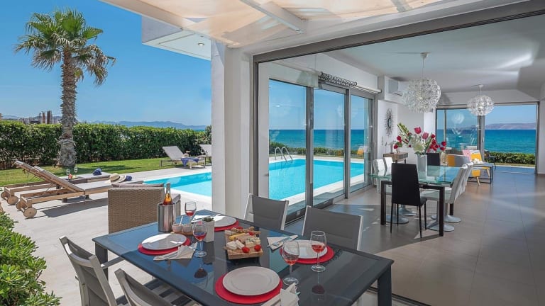 Die Villa am Gournes Beach bietet einen komfortablen und erholsamen Aufenthalt direkt am Strand. Die gut ausgestattete Villa verfügt über Annehmlichkeiten wie einen eigenen Pool und eine möblierte Terrasse, auf der Sie den Blick auf den Garten genießen können. Das freundliche Personal und die ruhige Lage sorgen für eine entspannte Atmosphäre.