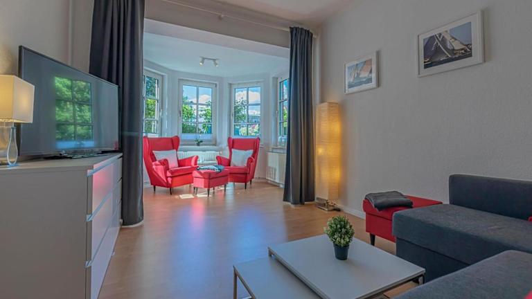 Die Unterkunft Villa am Park - U befindet sich in Laboe, nur 300 Meter vom Ostsee-Strand entfernt. Weitere Sehenswürdigkeiten in der Nähe sind das Marine-Ehrenmal und das U-Boot-Museum, die sich 1,2 km entfernt befinden. Die nächste Stadt ist Kiel, etwa 18 km entfernt, während der Flughafen Hamburg eine Distanz von 105 km aufweist.