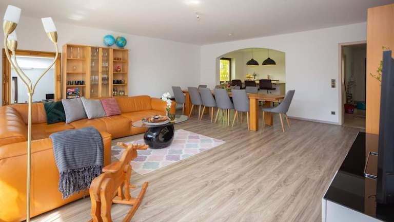 Die Villa am Wehr umfasst 9 Schlafzimmer, ein Wohnzimmer sowie eine voll ausgestattete Küche mit Kühlschrank und Kaffeemaschine. Zu den Bädern gehören 3 Badezimmer, die mit einem Bidet und einer Dusche ausgestattet sind. Außerdem sind ein Flachbild-TV mit Satellitenkanälen und ein Blu-ray-Player vorhanden.