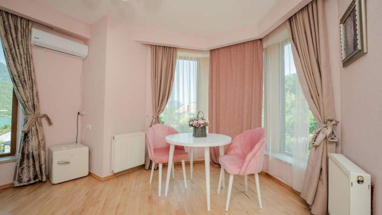 Die Villa Ananuri ist eine charmante Unterkunft mit einem saisonalen Außenpool in Ananuri, nur 60 km von Tiflis entfernt. Hier können Sie sich auf kostenfreies WLAN, Privatparkplätze und eine herrliche Terrasse mit Blick auf den üppigen Garten freuen. Die Villa bietet eine gut ausgestattete Küche, eine Sauna und die Möglichkeit, verschiedene Veranstaltungen wie Hochzeiten und Abschlussfeiern zu organisieren. Die Umgebung lädt zum Angeln ein und der internationale Flughafen Tiflis ist 80 km entfernt.