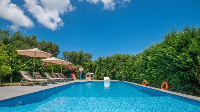 Die San Andreas Villa ist der perfekte Ort für einen erholsamen Urlaub mit Blick auf die Berge. Mit einer eigenen Terrasse und einem Balkon können Sie die malerische Umgebung in vollen Zügen genießen. Der Ferienhof bietet zudem einen eigenen Pool, einen Garten und Grillmöglichkeiten für entspannte Stunden im Freien. Mit kostenfreiem WLAN und Privatparkplätzen ist auch für Ihren Komfort gesorgt. Die Villa ist klimatisiert und verfügt über 3 Schlafzimmer, ein geräumiges Wohnzimmer und eine voll ausgestattete Küchenzeile. Handtücher und Bettwäsche werden gestellt, und die 3 Badezimmer sind mit kostenfreien Pflegeprodukten ausgestattet. Wenn Sie die Umgebung erkunden möchten, können Sie am Ferienhof ein Auto mieten. Der Hafen von Zakynthos und das Byzantinische Museum sind nur eine kurze Autofahrt entfernt. Der internationale Flughafen Zakynthos befindet sich ebenfalls in der Nähe.