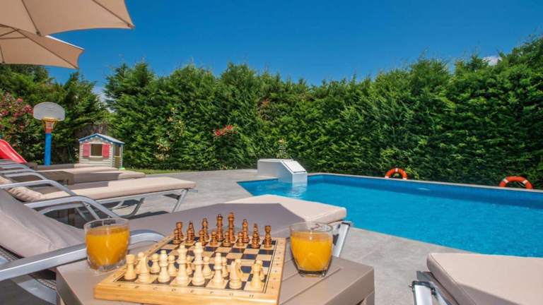Die klimatisierte Villa verfügt über 3 gemütliche Schlafzimmer, ein großes Wohnzimmer und eine voll ausgestattete Küchenzeile. Hier finden Sie alles, was Sie für einen komfortablen Aufenthalt benötigen, einschließlich eines Kühlschranks und eines Wasserkochers. Die 3 Badezimmer sind mit Duschen und kostenlosen Pflegeprodukten ausgestattet. Handtücher und Bettwäsche werden gestellt, sodass Sie sich um nichts kümmern müssen.