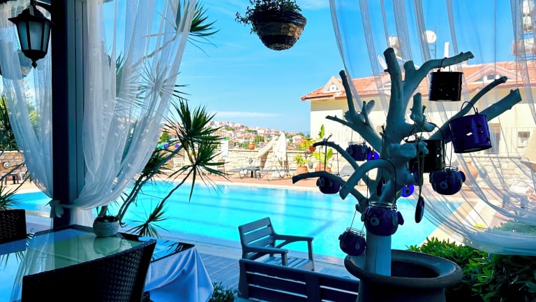 Das Hotel Villa Anfora in Datça bietet eine komfortable und entspannte Unterkunft in einer ruhigen Gegend. Genießen Sie den Außenpool und den Gartenbereich sowie die Annehmlichkeiten wie kostenfreies WLAN und einen Zimmerservice. Das freundliche Personal steht Ihnen rund um die Uhr zur Verfügung, um Ihnen bei Ihren Anliegen zu helfen. Beginnen Sie Ihren Tag mit einem leckeren Frühstück und verbringen Sie Ihre Zeit mit Aktivitäten wie Tischtennis und Darts. Die Zimmer sind gemütlich eingerichtet und verfügen über Annehmlichkeiten wie eine Klimaanlage und einen Balkon. Die Lage des Hotels ermöglicht es Ihnen, das Stadtzentrum von Datça bequem zu erreichen und den Flughafen Dalaman in angemessener Entfernung zu haben.