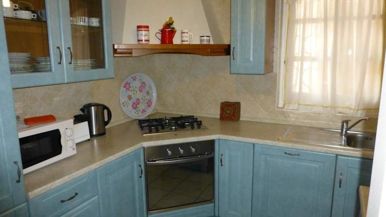 Die Villa verfügt über drei Schlafzimmer, ein Wohnzimmer und zwei Badezimmer, die mit einem Bidet und einer Dusche ausgestattet sind. Zudem gibt es eine gut ausgestattete Küche, einen Satelliten Flachbild-TV sowie eine Terrasse mit Meerblick.