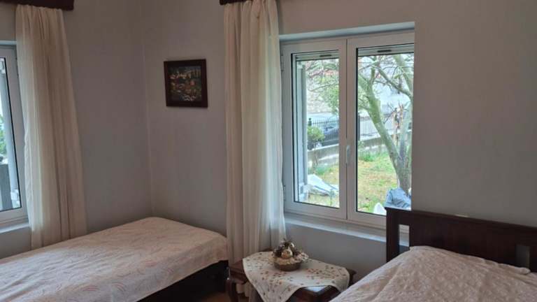 Die Vila Anna in Mitrópolis bietet Ihnen einen erholsamen Aufenthalt inmitten einer malerischen Umgebung. Genießen Sie die Annehmlichkeiten dieses Ferienhauses, darunter ein schöner Garten und Klimaanlage. Die Unterkunft ist gut ausgestattet und verfügt über einen Balkon mit Gartenblick sowie eine Terrasse mit atemberaubendem Bergblick.