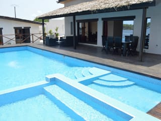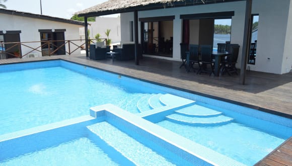Die Villa Assinie Bord de Lagune befindet sich in Assinie und bietet eine idyllische Lage direkt am Flussufer. Die Umgebung lädt zu entspannten Spaziergängen entlang des Wassers und zu Aktivitäten wie Bootstouren und Wassersport ein. Der internationale Flughafen Félix-Houphouët-Boigny ist nur eine kurze Autofahrt entfernt, sodass die Anreise bequem und einfach ist.
