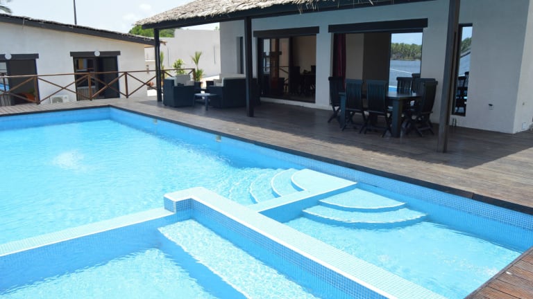 Erleben Sie einen entspannten Aufenthalt in der Villa Assinie Bord de Lagune in Assinie. Genießen Sie den Pool, den Garten und die Terrasse mit Poolblick. Die Unterkünfte bieten kostenloses WLAN, eine voll ausgestattete Küche und einen eigenen Balkon mit Flussblick. Entspannen Sie im Whirlpool und nutzen Sie den Grill für gemütliche Abende. Der internationale Flughafen Félix-Houphouët-Boigny ist nur 77 km entfernt.