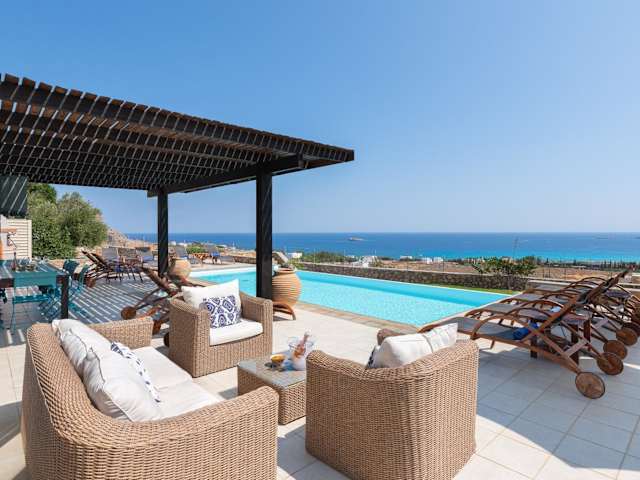 Die Villa verfügt über einen Außenpool, in dem Sie sich an warmen Tagen erfrischen können. Entspannen Sie auf der Terrasse und genießen Sie den atemberaubenden Blick auf die umliegende Landschaft. In der Nähe können Sie wandern und die Natur erkunden. Besuchen Sie auch die nahe gelegenen Strände und Sehenswürdigkeiten wie Prasonisi und das antike Kamiros. Der internationale Flughafen Rhodos ist nur 50 km entfernt und bietet eine gute Anbindung an die Villa.