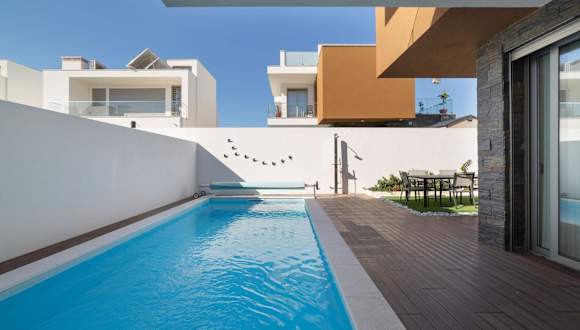 Die Villa Atlântico - By SCH bietet komfortable Übernachtungsmöglichkeiten in einer attraktiven Umgebung. Die Unterkunft umfasst einen Balkon, einen Garten und einen Außenpool, ideal für entspannende Momente im Freien. Die Übernachtungen sind klimatisiert und umfassen kostenlosen WLAN-Zugang für die Gäste.