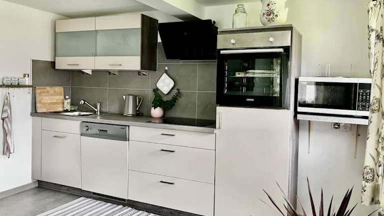 Die Ferienwohnung in der Villa Aurelia umfasst ein Schlafzimmer, ein Wohnzimmer und ein Badezimmer mit einer Dusche. Zur Ausstattung gehören ein Flachbild-TV, eine gut ausgestattete Küche mit Kühlschrank und Geschirrspüler sowie Handtücher und Bettwäsche. Zusätzlich gibt es eine Terrasse mit Blick auf die Berge.