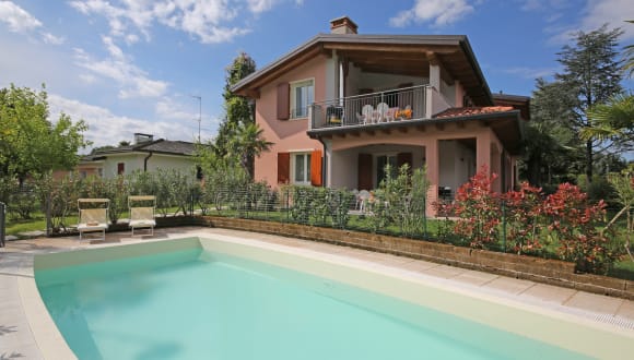 Die idyllische Villa befindet sich in ruhiger und grüner Lage auf der Landzunge Punta Grò, kurz vor der Halbinsel Sirmione, am südlichen Gardasee. Sie liegt direkt am Gardasee und ist von einem Privatgarten umgeben, in dem sich der hauseigene Swimmingpool mit Seeblick befindet. Die stilvolle Villa verfügt über drei elegant und apart eingerichtete Wohnungen in sanften, aber frischen Farben. Sie bietet einen herrlichen Blick auf den Gardasee.