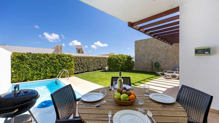 Die Villa umfasst zwei getrennte Schlafzimmer und eine voll ausgestattete Küchenzeile, die einen Kühlschrank und einen Geschirrspüler beinhaltet. Es gibt zwei Badezimmer, und sowohl Handtücher als auch Bettwäsche werden bereitgestellt.