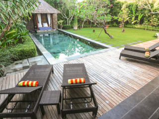 Die Villa Balidamai by Nagisa Bali verfügt über 3 Schlafzimmer und 4 Badezimmer, die alle modern und komfortabel eingerichtet sind. Die Villa ist klimatisiert und verfügt über einen geräumigen Wohnbereich sowie eine voll ausgestattete Küche, in der Sie Ihre eigenen Mahlzeiten zubereiten können. Genießen Sie den Luxus eines eigenen Pools und entspannen Sie auf der Terrasse mit Blick auf den Pool. Bettwäsche und Handtücher werden gestellt und ein Flachbild-Sat-TV steht Ihnen zur Verfügung.