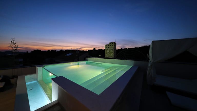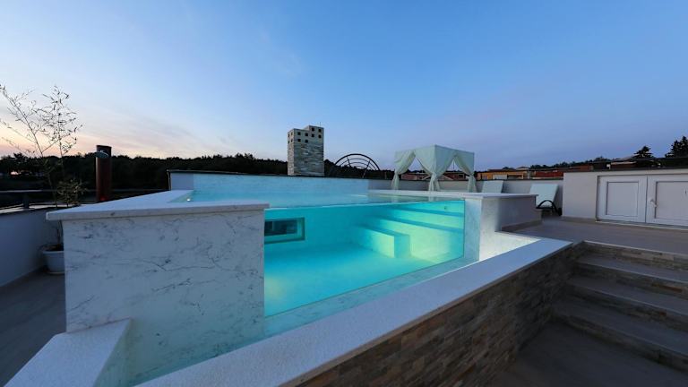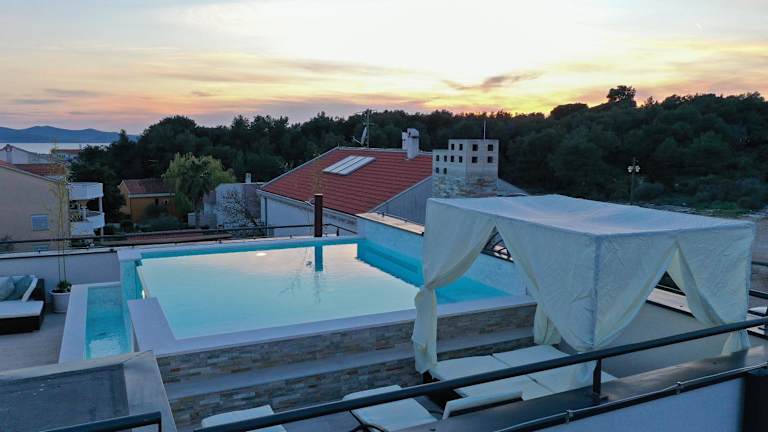 Das Rooftop pool & terrace - Villa Bellavista in Zadar ist die perfekte Unterkunft für Ihren Aufenthalt in der Stadt. Hier können Sie das ganze Jahr über den Außenpool nutzen und in komfortablen Apartments mit kostenfreiem WLAN und Privatparkplätzen übernachten. Genießen Sie den atemberaubenden Blick auf die Stadt oder das Meer von Ihrer eigenen Terrasse oder Ihrem Balkon aus. Die Strände Diklovac und Maestrala sind nur 2 km entfernt und der Flughafen Zadar ist ebenfalls gut erreichbar.