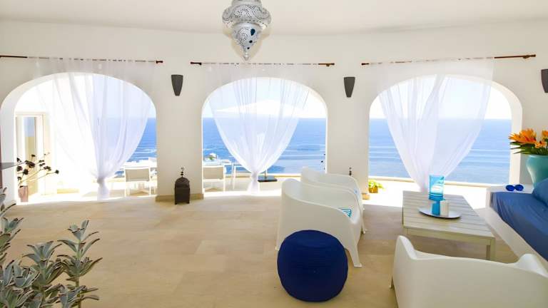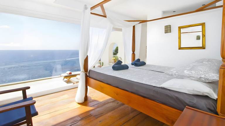 Die Villa besitzt 4 Schlafzimmer und 2 Badezimmer. Zur Ausstattung gehören Bettwäsche, Handtücher, ein TV sowie eine Terrasse mit Meerblick. Die Villa ist auch mit Heizung und Klimaanlage ausgestattet.