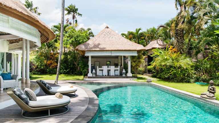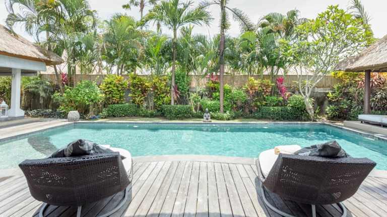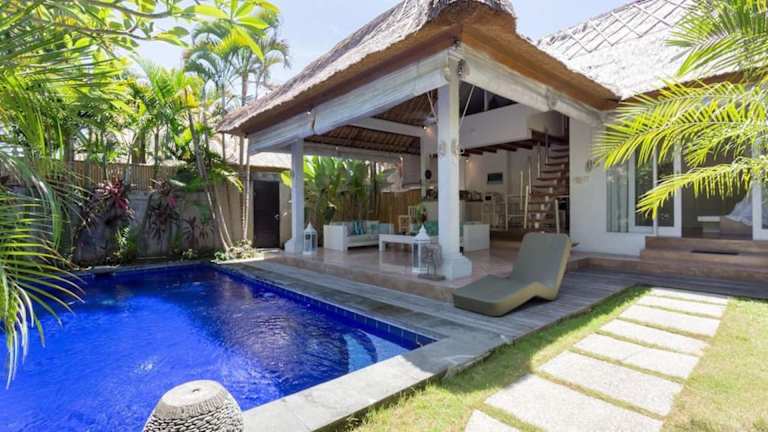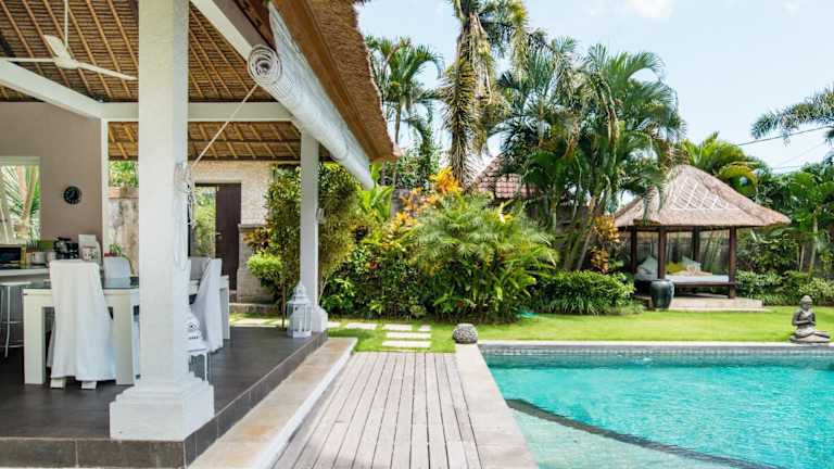 Die Villa Bliss, ein Paradies aus drei unabhängigen Villen, ist der perfekte Rückzugsort in der ruhigen Gegend von Umalas. Hier können Sie einen atemberaubenden Urlaub mit einem Außenpool, kostenlosem WLAN und exklusiven Mitgliedschaftsleistungen im Finns Recreation Club und Finns Beach Club in Berawa Beach, Canggu, genießen. Die Unterkunft bietet Ihnen einen komfortablen Aufenthalt mit einer voll ausgestatteten Küche, einem eigenen Bad und einem herrlichen Blick auf den Pool und den Garten. Darüber hinaus stehen Ihnen verschiedene Services wie Flughafentransfer und Lebensmittellieferungen zur Verfügung.