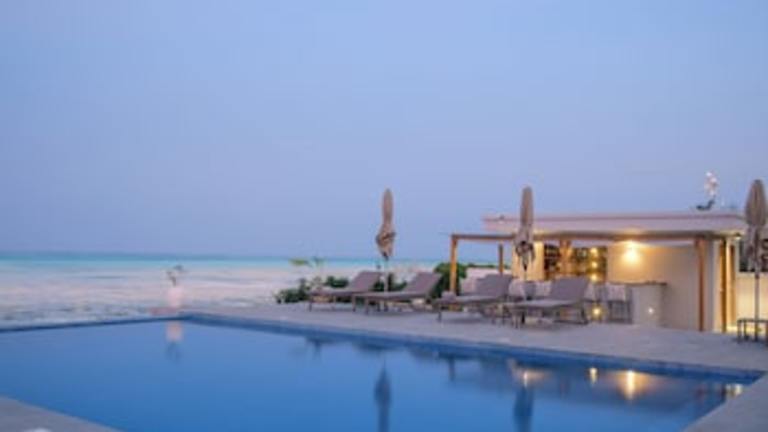 Die Villa Bluu Zanzibar bietet Übernachtungsmöglichkeiten mit einem Außenpool, einem Garten, kostenlosen Fahrrädern und einem kostenlosen Privatparkplatz. Zu den Einrichtungen gehören eine Gemeinschaftslounge und ein Zimmerservice, begleitet von kostenlosem WLAN. Die Unterkunft bietet außerdem ein Restaurant sowie eine Bar mit Meerblick und einer Terrasse.