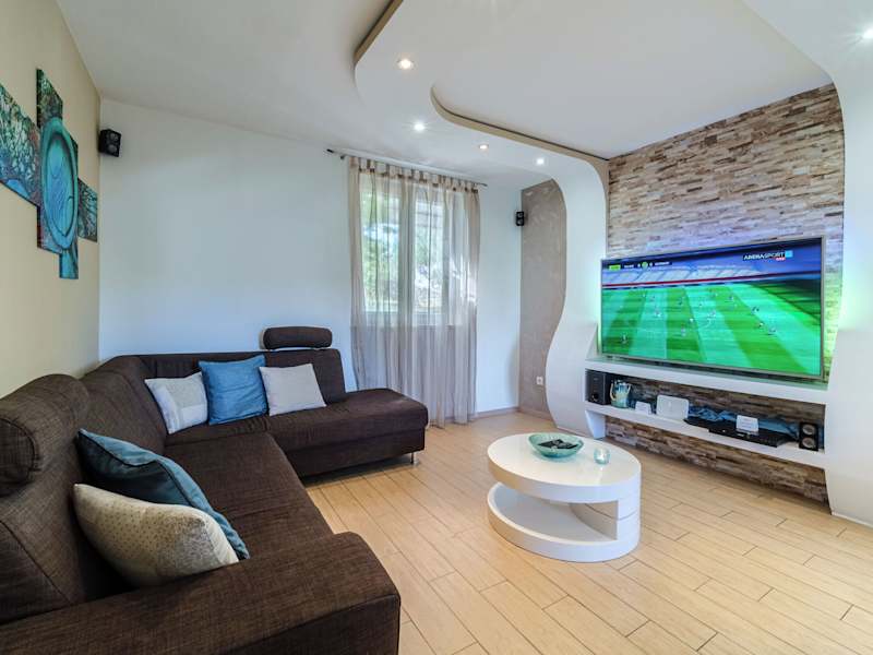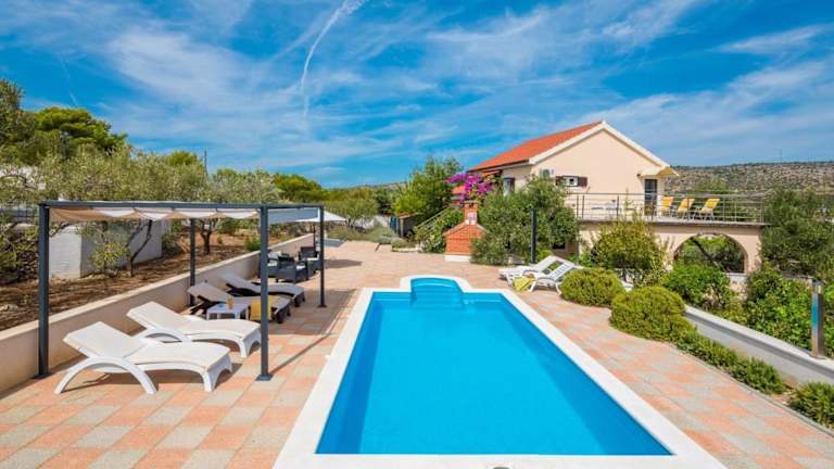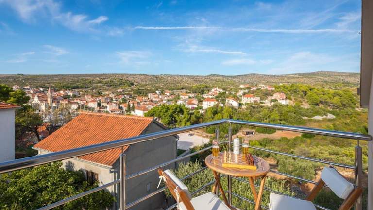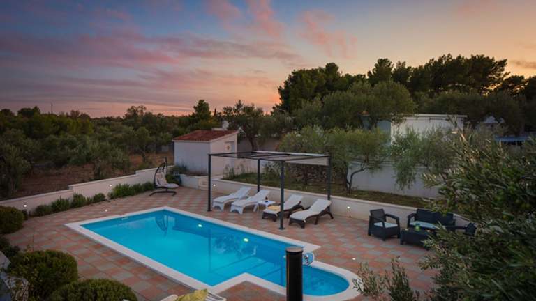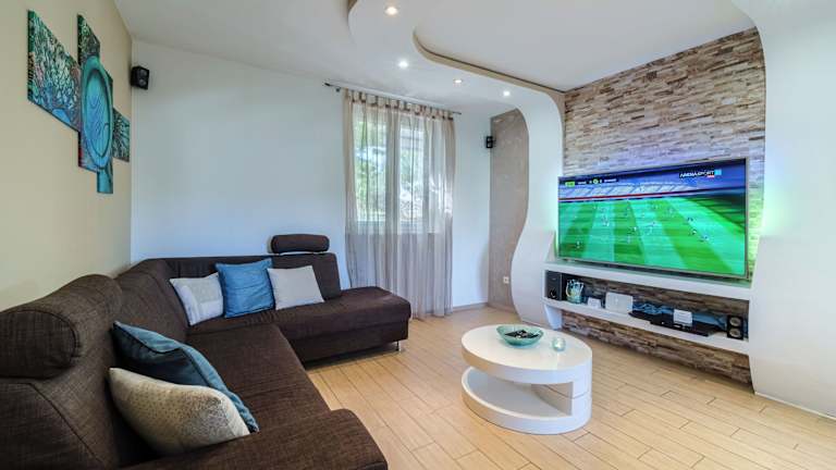 Die voll klimatisierte Villa Bravura Milna Brac with private pool verfügt über 6 geräumige Schlafzimmer und 4 moderne Badezimmer. Das Wohnzimmer lädt mit einem komfortablen Sitzbereich und einem Flachbild-Sat-TV mit DVD-Player zum Entspannen ein. Die voll ausgestattete Küche bietet einen Geschirrspüler und eine Mikrowelle, so dass Sie Ihre eigenen Mahlzeiten zubereiten können.
