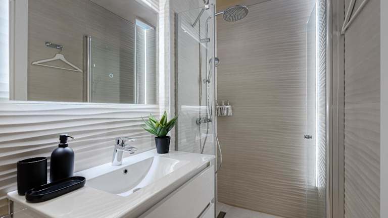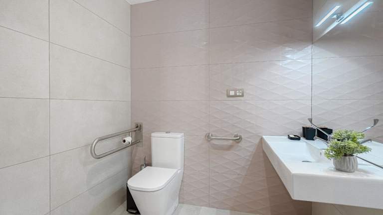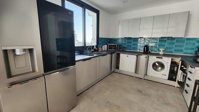 Das Ferienhaus bietet ein Wohnzimmer, eine komplett ausgestattete Küche mit Kühlschrank und Kaffeemaschine sowie fünf Badezimmer mit Dusche und Haartrockner. Handtücher und Bettwäsche werden bereitgestellt. Die Zimmer sind klimatisiert und schallisoliert. Die Unterkunft ist rollstuhlgerecht und bietet einige behindertengerechte Lösungen im Bad.