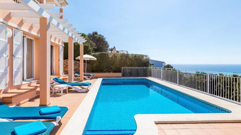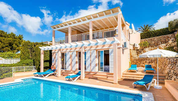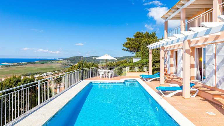 Verbringen Sie Ihren Urlaub in der Villa Camamilla by Menorca Vacations in Son Bou und genießen Sie den Luxus einer eigenen Villa mit Pool und Balkon. Entspannen Sie im Garten oder auf der Terrasse und genießen Sie den atemberaubenden Meerblick. Das Ferienhaus bietet Platz für bis zu 6 Personen und verfügt über 3 Schlafzimmer, eine voll ausgestattete Küche und 2 Badezimmer. WLAN ist in der gesamten Unterkunft kostenlos verfügbar. Der Strand Cala de llucalari ist nur 3 km entfernt und der Hafen von Mahon erreichen Sie nach 22 km. Der Flughafen Menorca ist 21 km entfernt.