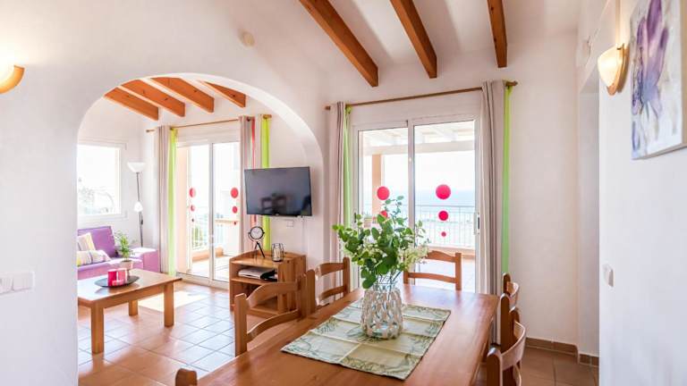 Die Villa Camamilla by Menorca Vacations bietet geräumige und komfortable Unterkünfte für bis zu 6 Personen. Das Ferienhaus verfügt über 3 Schlafzimmer, in denen Sie sich nach einem langen Tag am Strand ausruhen können. Die voll ausgestattete Küche bietet Ihnen die Möglichkeit, Ihre eigenen Mahlzeiten zuzubereiten, und das Wohnzimmer ist der perfekte Ort, um sich zu entspannen und Filme zu schauen. Die Villa verfügt auch über 2 Badezimmer mit Dusche und Haartrockner. Handtücher und Bettwäsche werden gestellt, damit Sie sich wie zu Hause fühlen können.