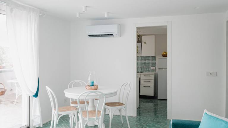 Das Ferienhaus bietet klimatisierte Übernachtungsmöglichkeiten mit 2 Schlafzimmern, einem Wohnzimmer sowie einer voll ausgestatteten Küche, die mit einem Kühlschrank und einer Kaffeemaschine ausgestattet ist. Es gibt außerdem 2 Badezimmer mit Bidet und Dusche. Handtücher und Bettwäsche werden zur Verfügung gestellt.