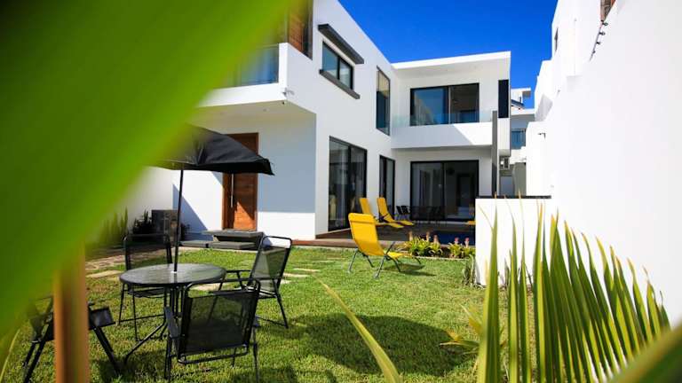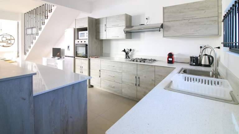 Die Villa verfügt über vier Schlafzimmer, eine voll ausgestattete Küche mit Kühlschrank und Ofen sowie drei Badezimmer, die jeweils mit einer Dusche, einem Haartrockner und einer Waschmaschine ausgestattet sind. Handtücher und Bettwäsche werden ebenfalls bereitgestellt.
