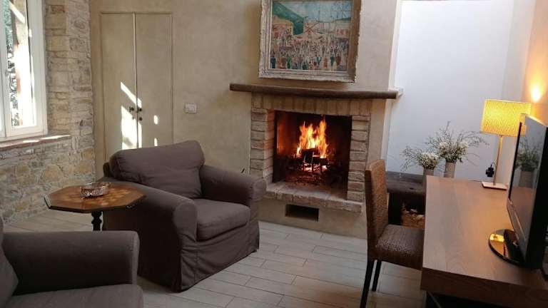 Die Zimmer im Relais Casamassima sind elegant im Landhausstil eingerichtet und bieten eine gemütliche Atmosphäre. Jedes Zimmer verfügt über eine Terrasse, auf der Sie die frische Luft und die schöne Umgebung genießen können. Zur Ausstattung gehören ein Flachbild-TV, eine Klimaanlage, ein Wasserkocher und ein Kühlschrank für Ihren Komfort.
