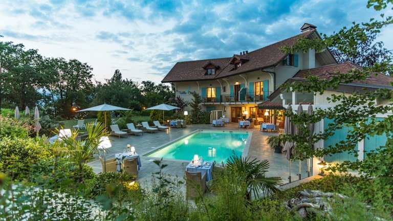 Die Villa Cecile in Yvoire ist ein idyllisches Hotel am Ufer des Genfer Sees, das mit seinem luxuriösen Angebot an Annehmlichkeiten und kostenfreiem WLAN beeindruckt. Genießen Sie entspannende Momente im Hamam, Whirlpool, der Sauna und dem Pool. Die Zimmer sind stilvoll eingerichtet und bieten modernen Komfort sowie einen herrlichen Ausblick auf den Pool, den Garten oder den See. Im hoteleigenen Restaurant können Sie traditionelle Gerichte und lokale Weine genießen. Die Lage des Hotels ermöglicht es Ihnen, den Yachthafen von Yvoire zu Fuß zu erreichen und verschiedene Aktivitäten wie Bootsfahrten auf dem See und Spaziergänge in der mittelalterlichen Stadt zu unternehmen.