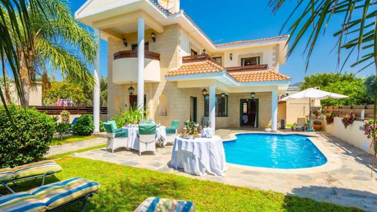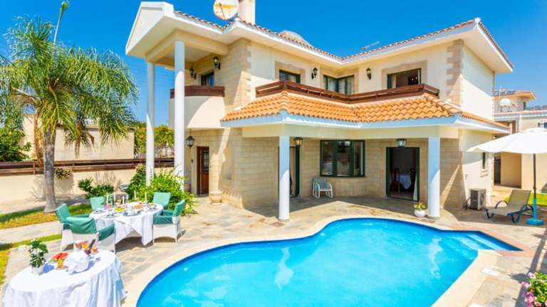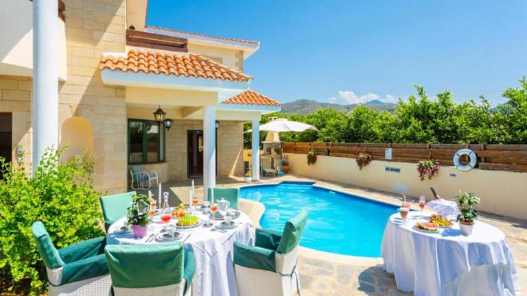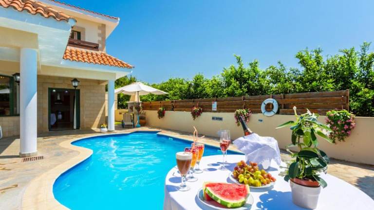 Die Villa Charianna bietet geräumige Unterkünfte mit allen Annehmlichkeiten, die Sie für einen komfortablen Aufenthalt benötigen. Die Villa verfügt über einen eigenen Pool, in dem Sie sich an heißen Tagen erfrischen können. Innen bietet die Villa einen DVD-Player, eine voll ausgestattete Küche mit Kühlschrank, Backofen und Geschirrspüler, ein gemütliches Wohnzimmer und einen Essbereich. Mit insgesamt 4 Schlafzimmern und 3 Badezimmern ist genügend Platz für die ganze Familie oder eine Gruppe von Freunden vorhanden. Kostenloses WLAN und Klimaanlage sorgen für zusätzlichen Komfort.