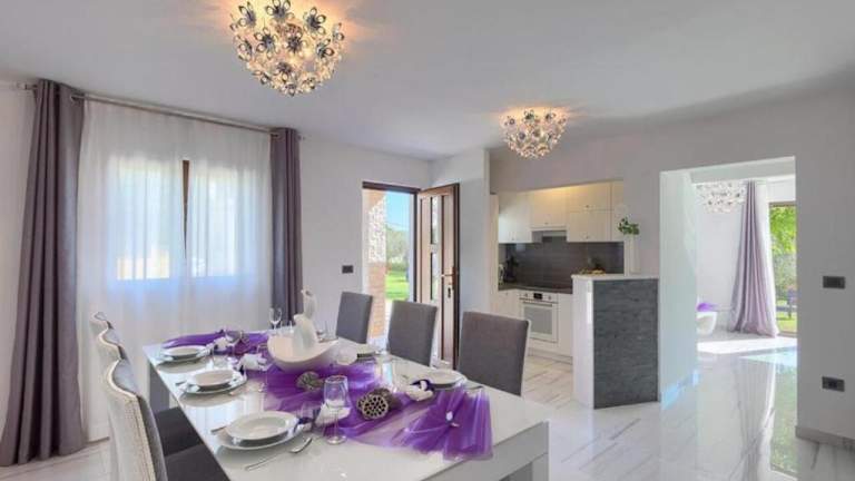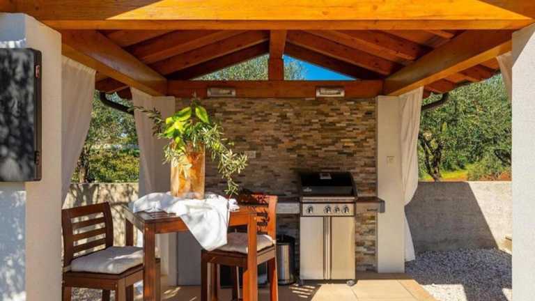 In der voll ausgestatteten Küche der Villa stehen ein Kühlschrank und eine Kaffeemaschine zur Verfügung. Es gibt einen Grillbereich für die Zubereitung von Mahlzeiten im Freien.