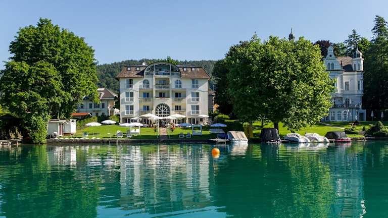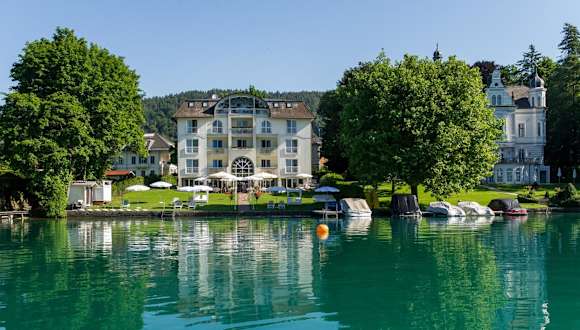 Die Villa Christina ist ein familiengeführtes Hotel direkt am Ufer des Wörthersees und nur wenige Gehminuten vom Zentrum von Pörtschach entfernt. Hier können Sie einen entspannten Urlaub mit eigenem Privatstrand, einer Terrasse mit Seeblick und komfortablen Zimmern genießen. Starten Sie den Tag mit einem leckeren Frühstück und gönnen Sie sich am Nachmittag einen Snack mit Kaffee und Kuchen. Die Umgebung bietet eine Vielzahl an Freizeitaktivitäten wie Golf und Bootsfahrten.
