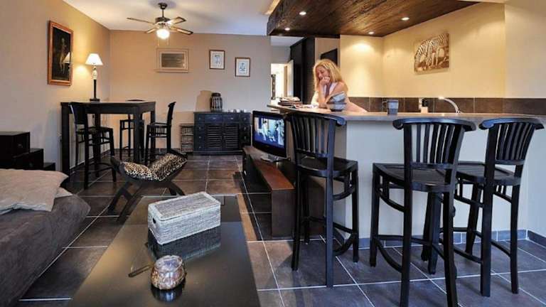 Die Villa bietet ein separates Schlafzimmer, ein Wohnzimmer, eine voll ausgestattete Küche sowie ein Badezimmer. Zur Ausstattung gehört ein Flachbild-TV. Die Unterkunft ist ideal für bis zu vier Personen.