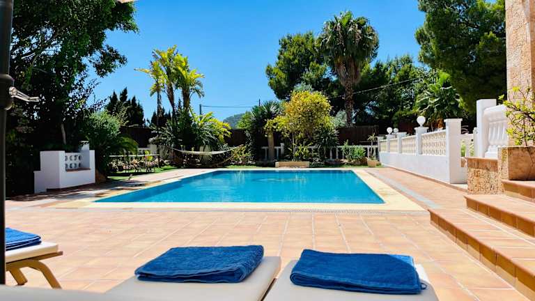 Verbringen Sie einen entspannten Urlaub in der Villa Can Maria auf Ibiza. Die klimatisierte Unterkunft bietet einen eigenen Pool, kostenfreies WLAN und alle Annehmlichkeiten für einen komfortablen Aufenthalt. Genießen Sie die Privatsphäre und den Komfort dieser Villa, die nur eine kurze Fahrt von den schönsten Stränden und Sehenswürdigkeiten der Insel entfernt liegt.