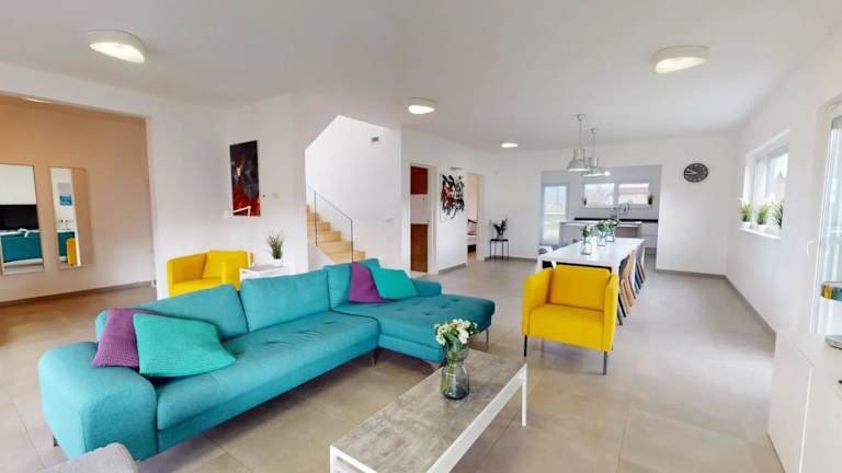 Die Villa umfasst 5 Schlafzimmer, ein Wohnzimmer, einen Kabel-Flachbild-TV sowie eine vollständig ausgestattete Küche. Es gibt 3 Badezimmer, ausgestattet mit einem Bidet und einer Dusche. Handtücher und Bettwäsche werden zur Verfügung gestellt.