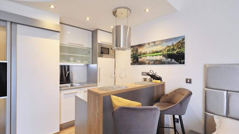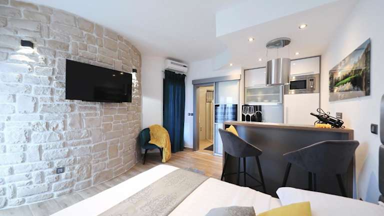 Die Zimmer in der Villa Dalmatino verfügen über eine Veranda/Pati, einen Gartenblick, einen Sitzbereich, einen Satelliten-Flachbild-TV sowie eine voll ausgestattete Küche mit Kühlschrank, Mikrowelle, Herdplatte, Kaffeemaschine und Wasserkocher. Jedes Zimmer hat ein eigenes Badezimmer mit Dusche und Haartrockner, die Unterkunft bietet zudem Bettwäsche, Handtücher und Wäsche, die nach den lokalen Richtlinien gereinigt werden.