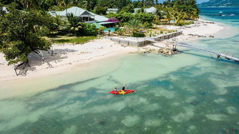 Die Villa de Cerf liegt auf der kleinen Insel Cerf an der Nordküste von Mahé. Die Insel bietet eine malerische Umgebung mit kristallklarem Wasser und weißen Sandstränden. Von der Villa aus haben Sie einen atemberaubenden Blick auf den Pool und das Meer. Die Insel bietet auch Möglichkeiten zum Wandern, für Wasserparks und Tauchausflüge, so dass Sie die tropische Natur und das Wasserleben erkunden können.