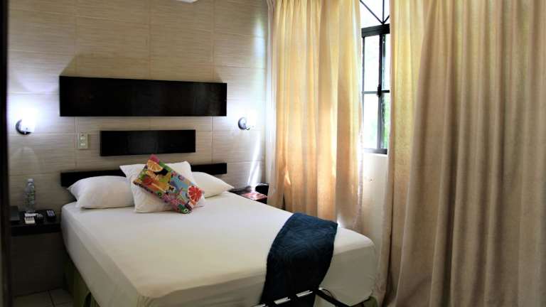 Die Zimmer im Villas del Angel Hotel sind hell und modern gestaltet. Sie verfügen über Annehmlichkeiten wie einen Flachbild-TV und Klimaanlage, um den Gästen einen komfortablen Aufenthalt zu bieten. Das kostenfreie WLAN ermöglicht es den Gästen, jederzeit mit der Welt verbunden zu bleiben.