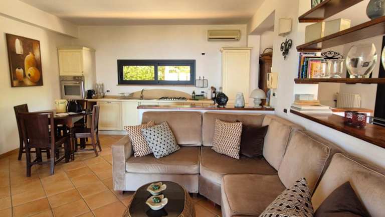 Die Villa bietet vier Schlafzimmer, ein Wohnzimmer und eine voll ausgestattete Küchenzeile mit Kühlschrank und Kaffeemaschine. Die beiden Badezimmer sind mit Bidet und Dusche ausgestattet. Handtücher und Bettwäsche werden zur Verfügung gestellt.